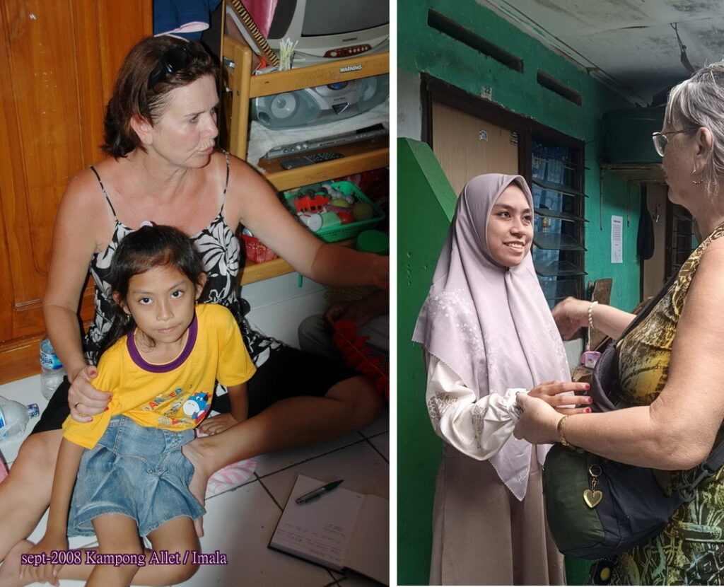 Nu in het heden. Het resultaat is mede door de hulp van de BenHeartFoundation nu stabiel. Imala (nu 26) studeert dit jaar af in Jawa als lerares , haar broer Zahki leert ook voor leraar op Jawa, het kleine broertje van 8 zit in Kuta op school. Vader heeft werk als Gids, en moeder is weer gezond. Voor de ramadan natuurlijk wel een extra tas met boodschappen mee genomen, omdat het inkomen niet heel hoog is.